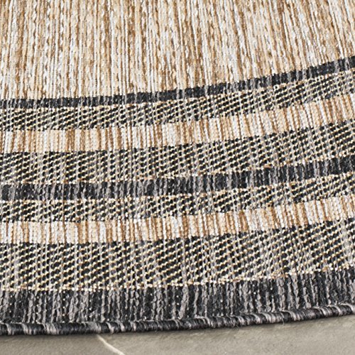 SAFAVIEH Courtyard Collection Area Rug – 7’10” Round, Natural & Black, Indoor/Outdoor, Weather Resistant & Washable, Ideal for Patio, Backyard, Mudroom, Deck (CY8475)