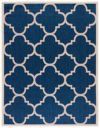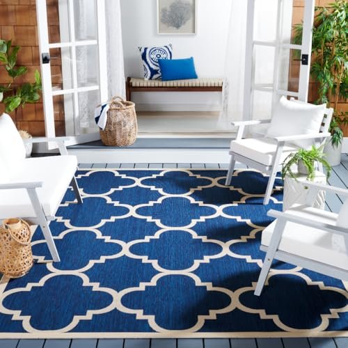 SAFAVIEH Courtyard Collection Area Rug – 8′ x 10′, Navy & Beige, Moroccan Trellis Design, Non-Shedding & Easy Care, Indoor/Outdoor & Washable-Ideal for Patio, Backyard, Mudroom (CY6243-268)