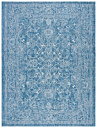 SAFAVIEH Courtyard Collection Area Rug – 8′ x 10′, Navy & Ivory, Non-Shedding & Easy Care, Indoor/Outdoor & Washable-Ideal for Patio, Backyard, Mudroom (CY8680-36821)