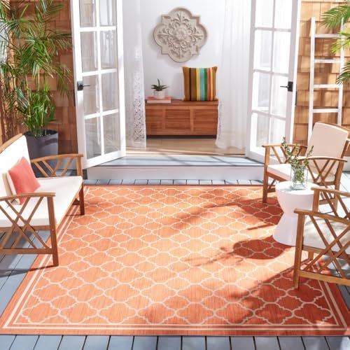 SAFAVIEH Courtyard Collection Area Rug – 8′ x 10′, Terracotta & Bone, Trellis Design, Non-Shedding & Easy Care, Indoor/Outdoor & Washable-Ideal for Patio, Backyard, Mudroom (CY6918-241)