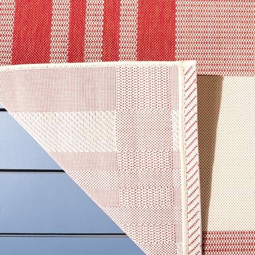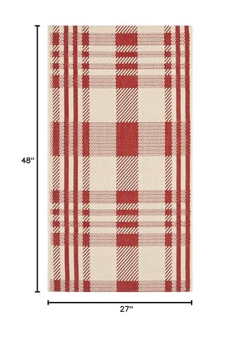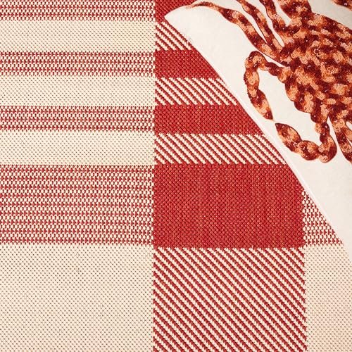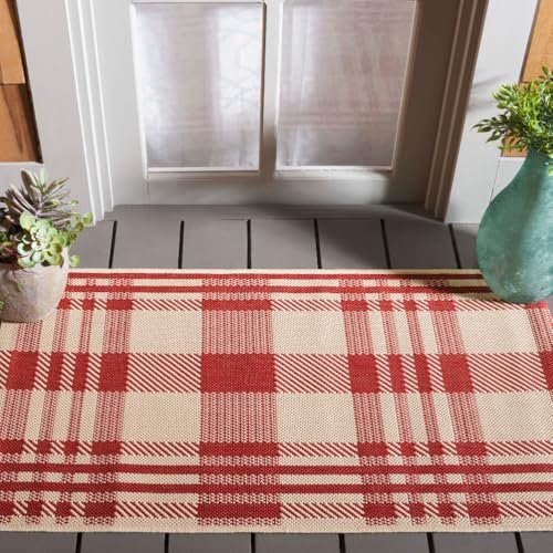 SAFAVIEH Front Door Mat Courtyard Collection Accent Rug – 2’3″ x 4′, Red & Bone, Indoor/Outdoor, Plaid Pattern, Weather Resistant & Washable, Ideal for Entryway, Patio, Kitchen, Mudroom (CY6201-238)