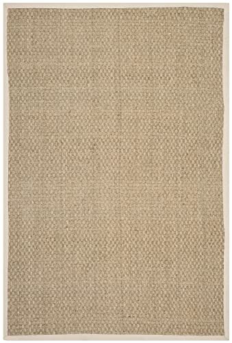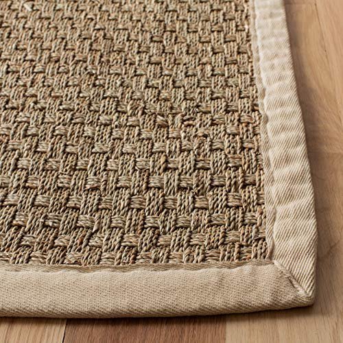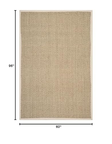 SAFAVIEH Natural Fiber Collection Area Rug – 5′ x 8′, Natural & Ivory, Border Basketweave Seagrass Design, Easy Care, Ideal for High Traffic Areas in Living Room, Bedroom (NF114J)