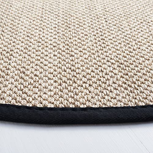 SAFAVIEH Natural Fiber Collection Area Rug – 6′ Round, Marble & Black, Border Sisal Design, Easy Care, Ideal for High Traffic Areas in Living Room, Bedroom (NF143A)