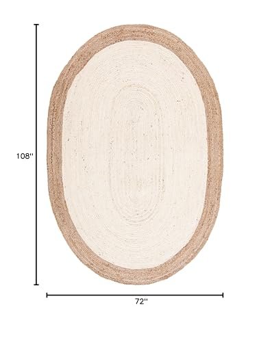 SAFAVIEH Natural Fiber Collection Area Rug – 6′ x 9′ Oval, Ivory & Natural, Handmade Boho Braided Jute, Ideal for High Traffic Areas in Living Room, Bedroom (NF801M)