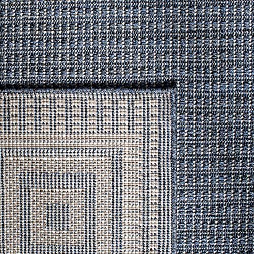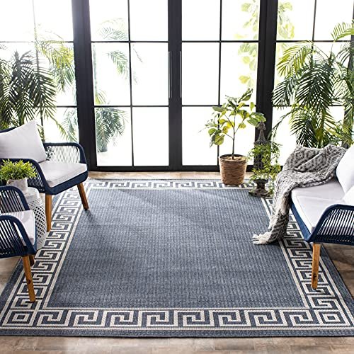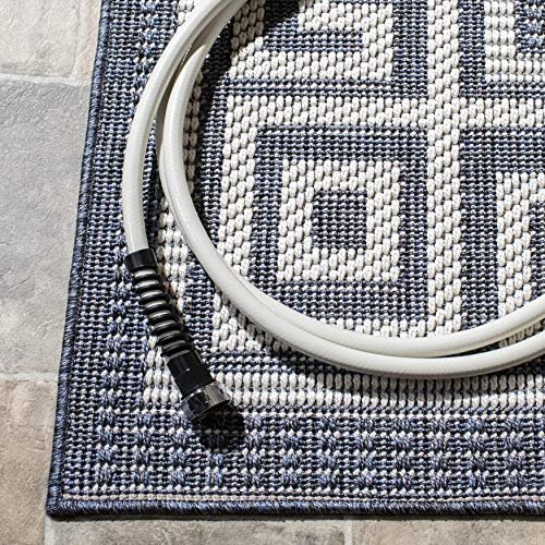 SAFAVIEH Washable Rug Bermuda Collection – 8′ x 10′, Dark Blue & Ivory, Indoor/Outdoor, Weather Resistant, Ideal for Patio, Backyard, Mudroom, Kitchen, Deck (BMU820M)