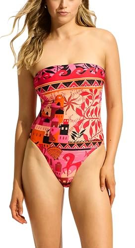 Seafolly Women’s Standard DD Cup Bandeau One Piece Swimsuit, Atlantis ParadiPink