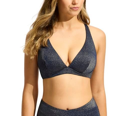 Seafolly Women’s Standard DD Cup Fixed Triangle Bikini Top Swimsuit, Poolside Midnight Blue