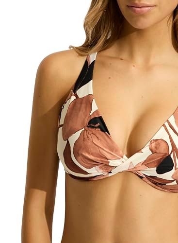 Seafolly Women’s Standard F Cup Wrap Front Bikini Top Swimsuit, SecretGarden Black