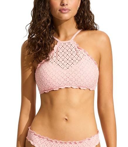 Seafolly Women’s Standard High Neck Tank Bikini Top Swimsuit, Daydreamer Dusty Pink