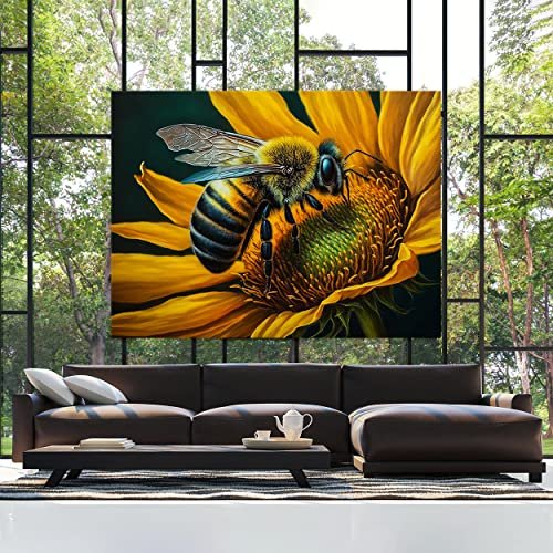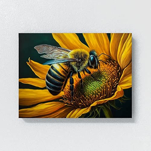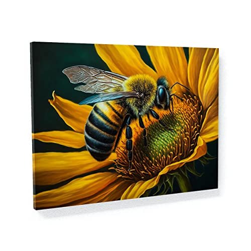 Sense Canvas Bee Artwork Sunflower 3 Canvas Art – Home Decor Wall Art Print Poster Painting X-Large 48×36 / 1.5″