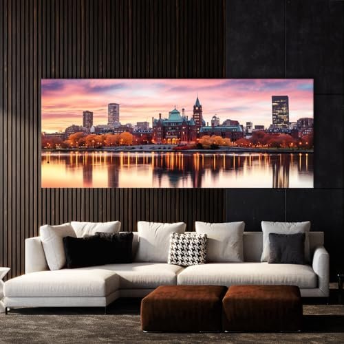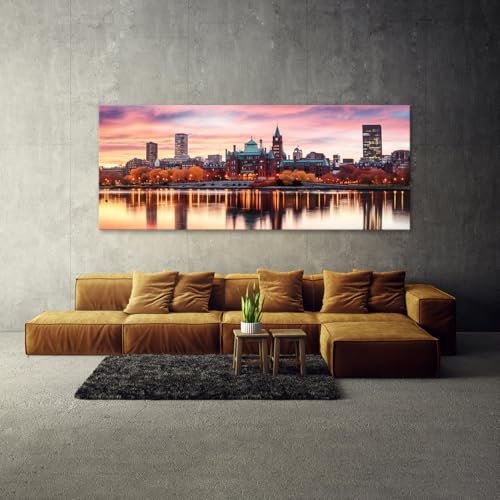 Sense Canvas Boston City 46 Canvas Art – Home Decor Wall Art Print Poster Painting X-Large 60×24 / 1.5″