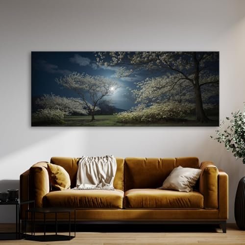 Sense Canvas Dogwood Tree Nocturne 69 Canvas Art – Home Decor Wall Art Print Poster Painting X-Large 60×24 / 0.75″