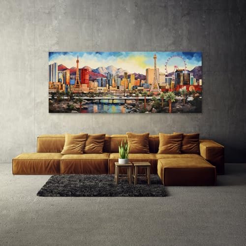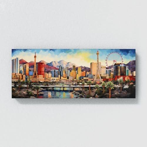 Sense Canvas Las Vegas City 34 Canvas Art – Home Decor Wall Art Print Poster Painting X-Large 60×24 / 1.5″