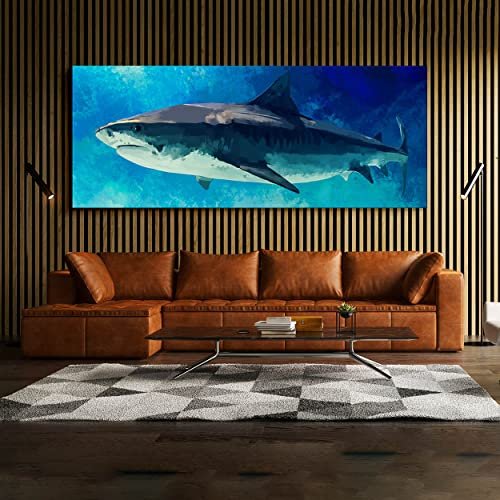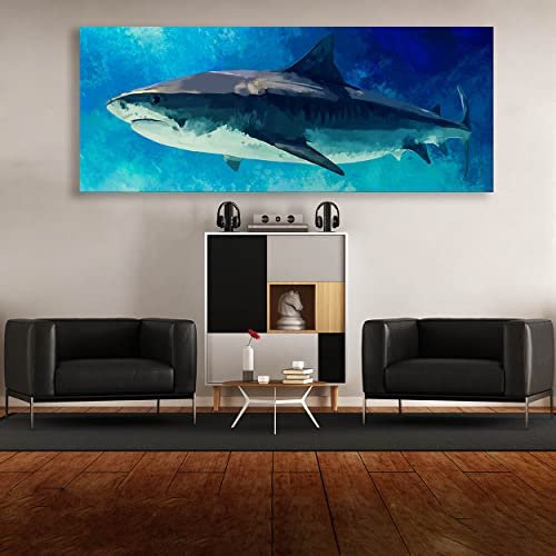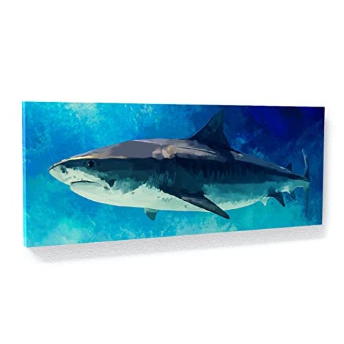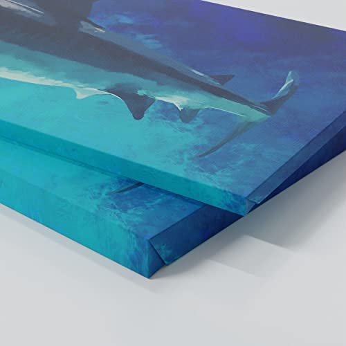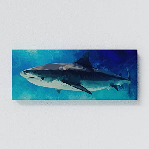 Sense Canvas Shark Canvas Art – Underwater Nautica Marine Blue Ocean Fish Sea Home Decor Print Poster Painting X-Large 60×24 / 1.5″
