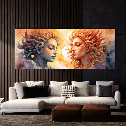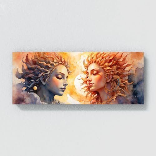 Sense Canvas Sun Moon Cosmic Harmony 39 Canvas Art – Home Decor Wall Art Print Poster Painting X-Large 60×24 / 0.75″