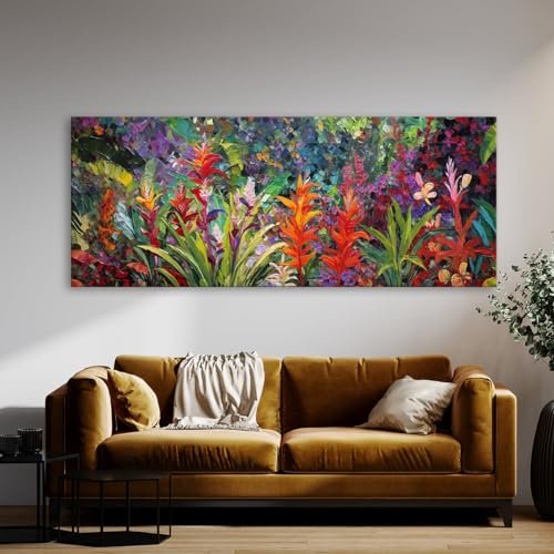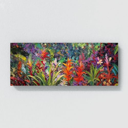 Sense Canvas Tropical Impasto Garden 60 Canvas Art – Home Decor Wall Art Print Poster Painting X-Large 60×24 / 1.5″