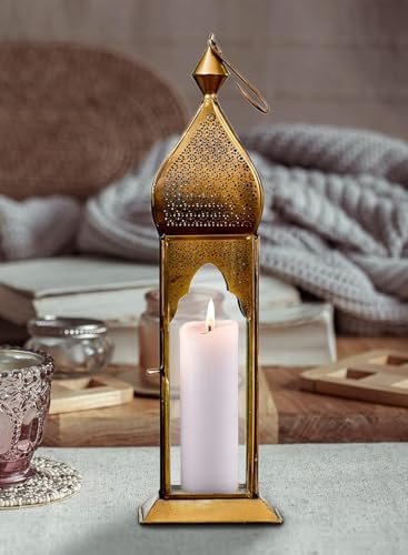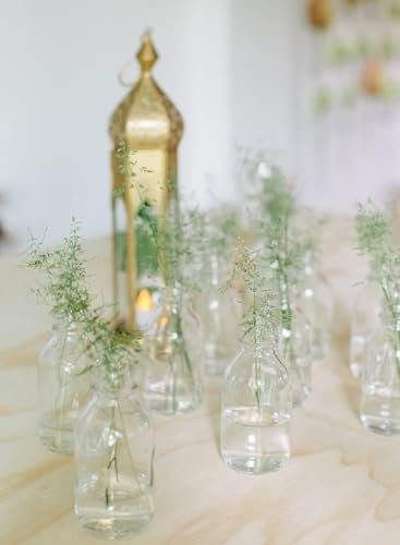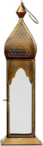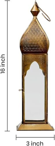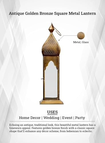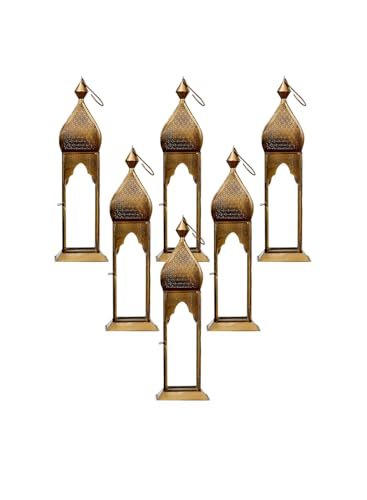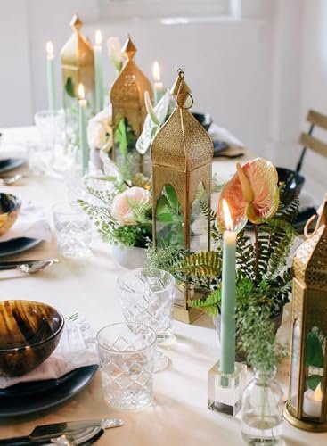 Serene Spaces Living Antique Golden Bronze Square Metal Lantern, Clear Glass Paneled Tealight Holder, Vintage Decor Lantern for Dining Table, Wedding, Holiday, Event, Pack of 6