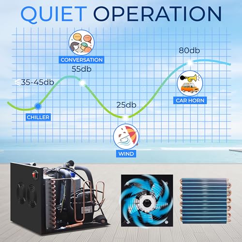 QUIET, EFFICIENT PERFORMANCE—Features a whisper-quiet compressor and built-in fan system for superior heat dissipation without noise, creating a calm environment for fish tanks, hydroponic systems, and aquatic life.
