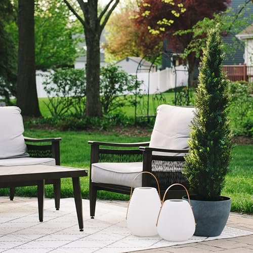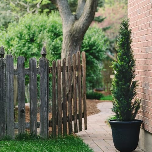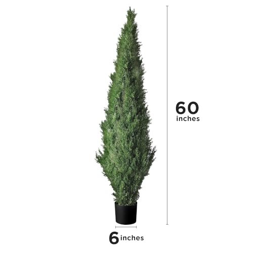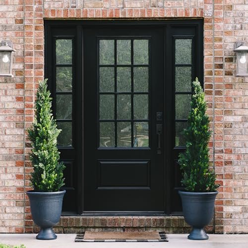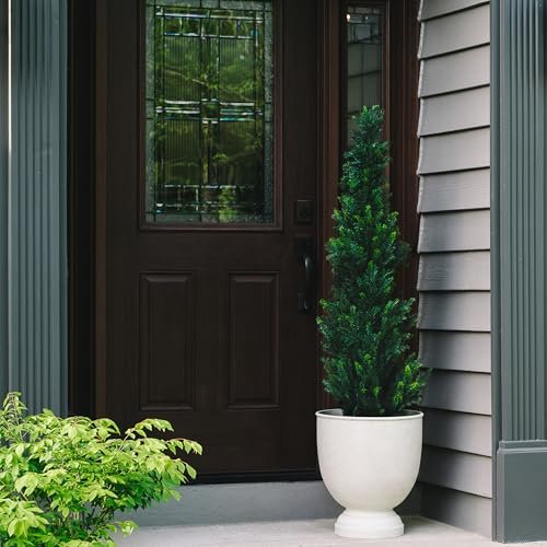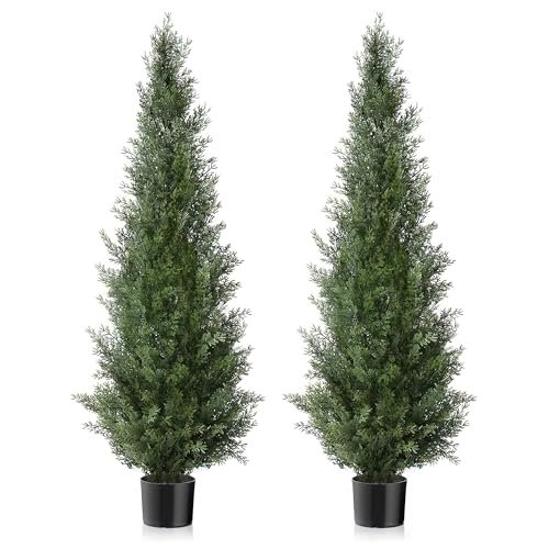 Set of 2 Pre-Potted 5 Feet Faux Cedar Tree, Lifelike UV Protected Front Door Decor, Porch, Garden, Entryway Topiary, Indoor/Outdoor Use – Ready to Display