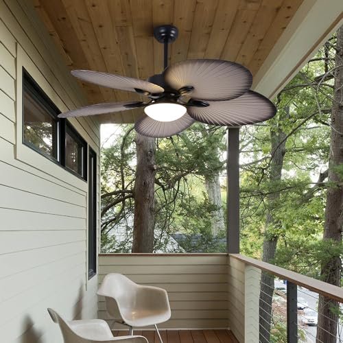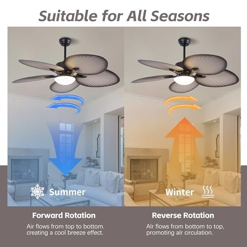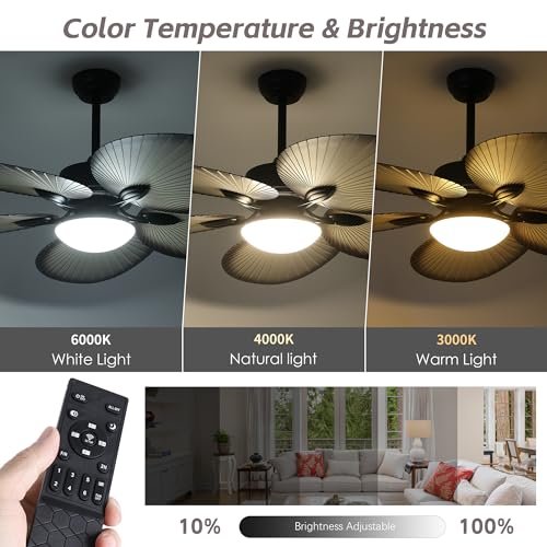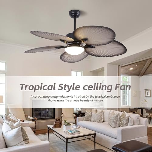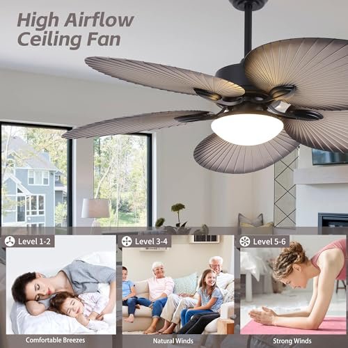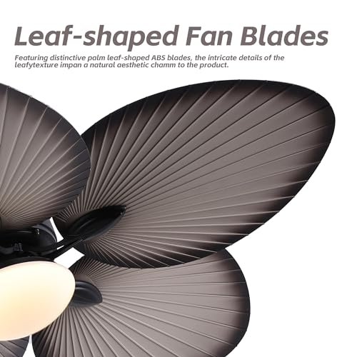 She’s home 52 Inch Tropical Indoor Outdoor Ceiling Fans with Lights and Remote, 5 Palm Leaf Blades for Bedroom, Living Room, 6Speeds, Reversible Motor