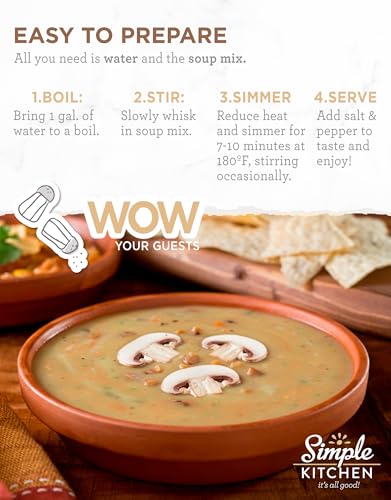 GOURMET DELIGHT: Indulge in the exquisite taste of restaurant-quality Cream of Mushroom Soup Mix by Simple Kitchen. Crafted to perfection, it serves as the ideal starter or main dish for large events, parties, and catering. With 17 servings per pouch, it’s a culinary delight for diverse occasions, providing a gourmet touch effortlessly.
