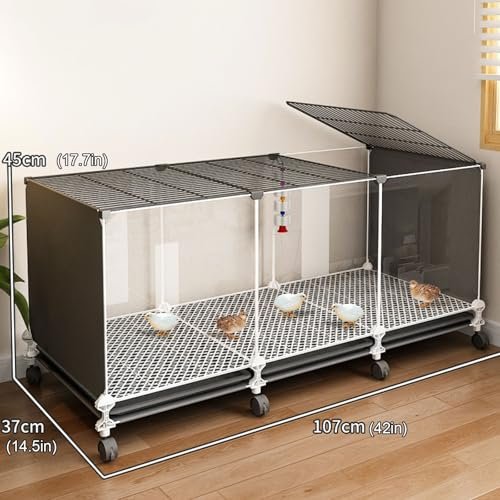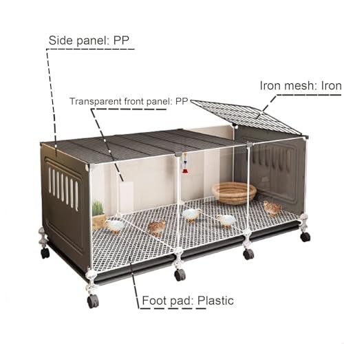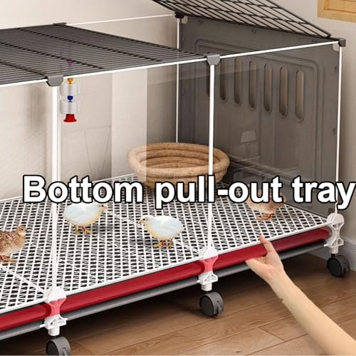 Small Chicken Coops on Wheels Top Skylight Design Chicken Cage Indoor with Transparent Panel Pull-Out Tray Iron Mesh + PP Black/White Various