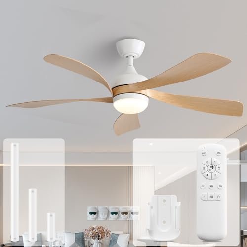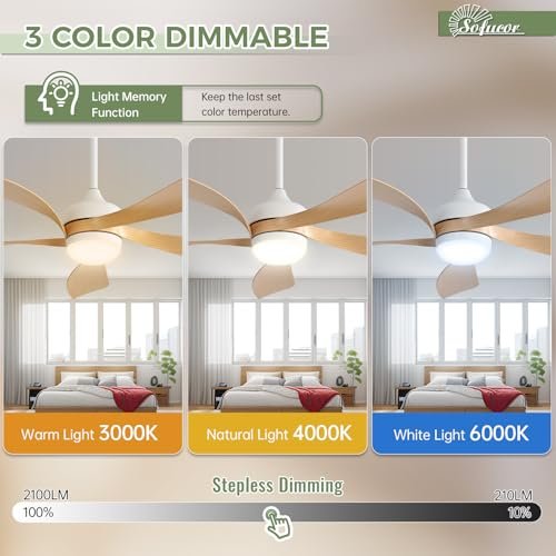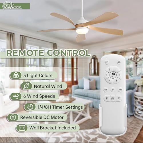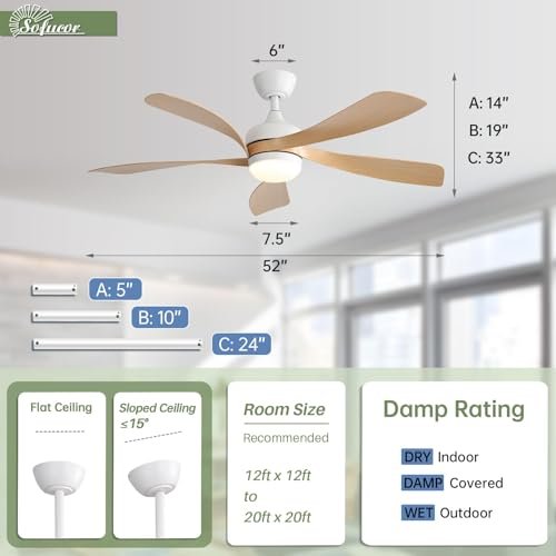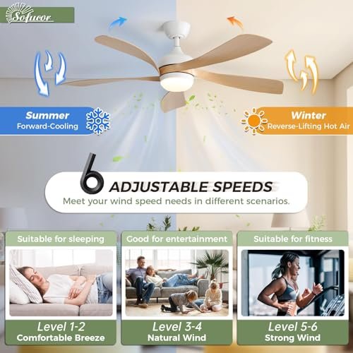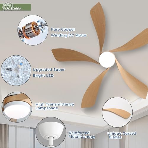 Sofucor 52 Inch Ceiling Fans with Lights and Remote, Outdoor Ceiling Fan with Light 6-Speed 3 CCT 3-Timer, Modern Low Profile Ceiling Fan 5 Blade Reversible DC Motor for Living Room Bedroom Patio