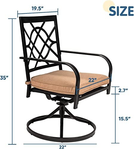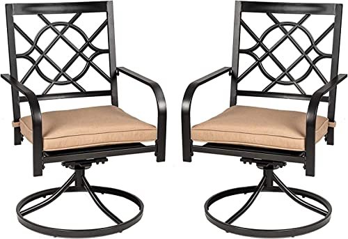 SOLAURA Patio Swivel Chairs of 2, Outdoor Dining Chair with Soft Cushion Patio Furniture for Garden, Backyard, Porch, Balcony
