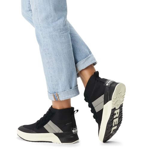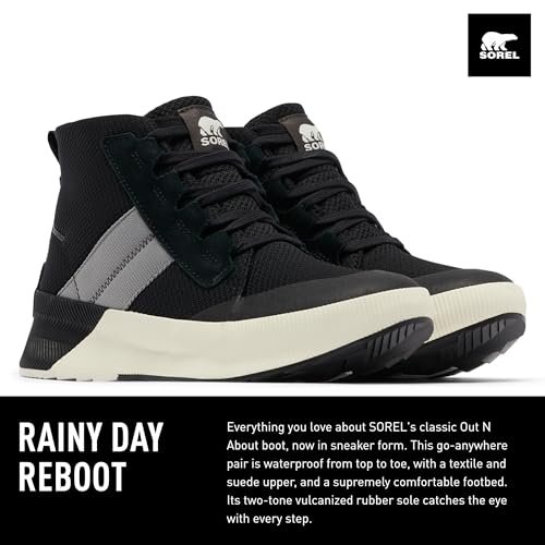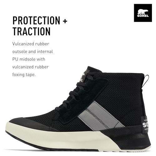 Sorel Women’s Out N About III Mid Sneaker Waterproof Shoes – Black, Sea Salt – Size 9.5