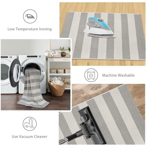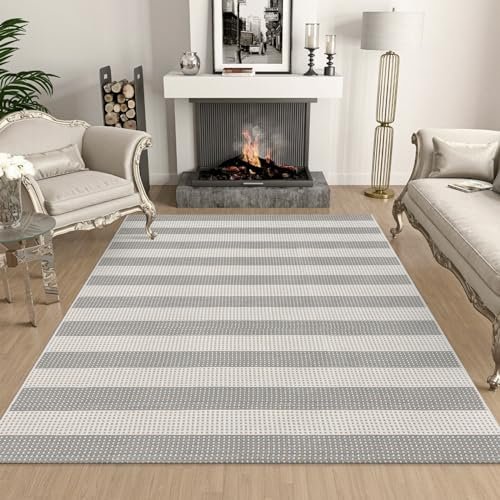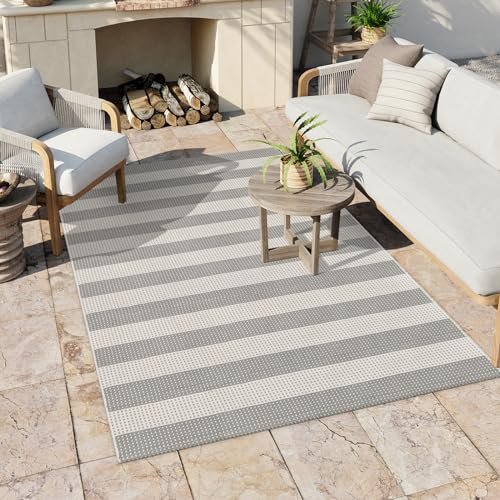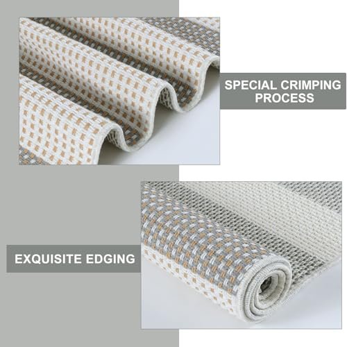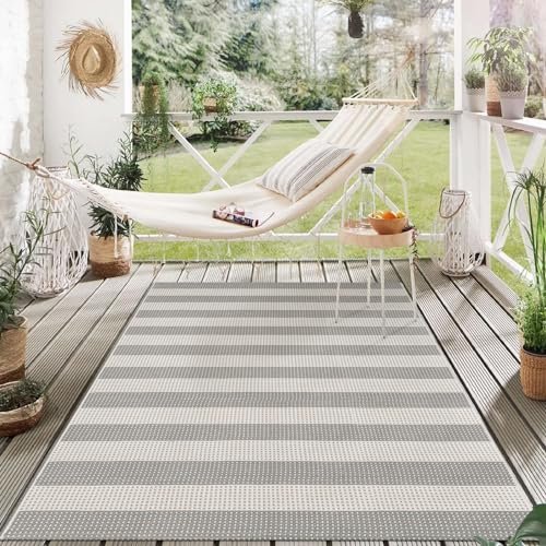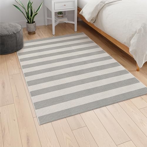 Sungea Striped Rug 4×6 ft Outdoor, Washable Cotton Woven Patio Rug, Reversible Large Outside Door Mats,Foldable Indoor Outdoor Rugs for Porch/Farmhouse/Living Room(Grey and White)