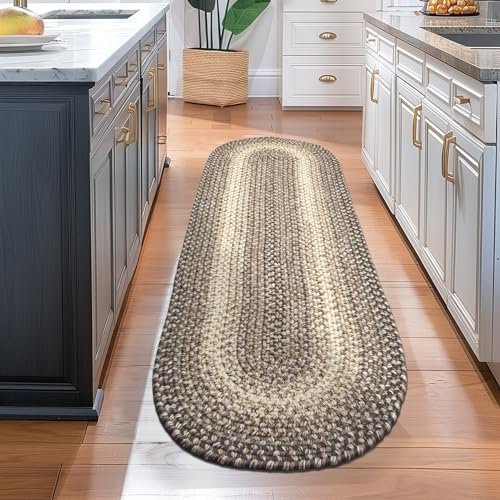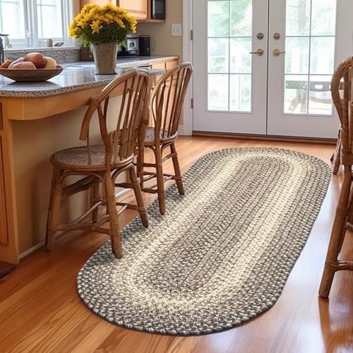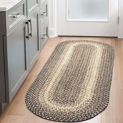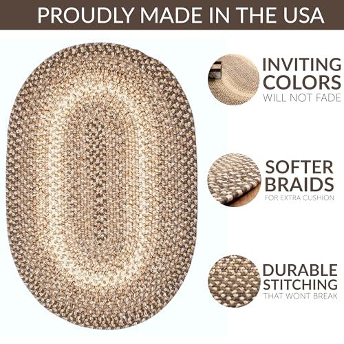Super Area Rugs Braided Rugs Farmhouse Kitchen Rug – Ridgewood Braided Rug for Living Room – Reversible – Indoor/Outdoor – Made in USA – Brown Velvet/Beige, 2′ X 8′ Oval Runner