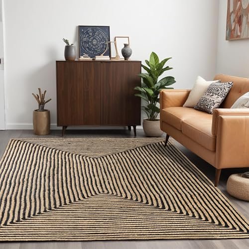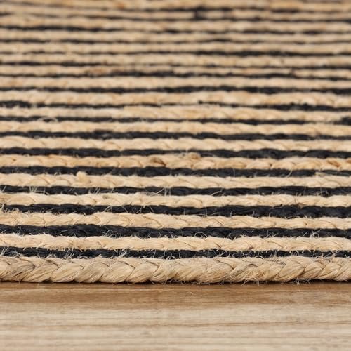 Superior Braided Dyed Jute Handwoven Indoor Area Rug, Jute Floor Decor for Entry, Kitchen, Living Room, Dining Room, Bedroom, Office, Apartment, Hand-Woven Modern Farmhouse Rugs, 5′ x 8′, Black