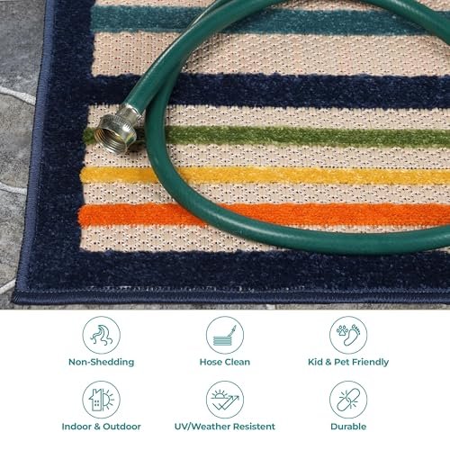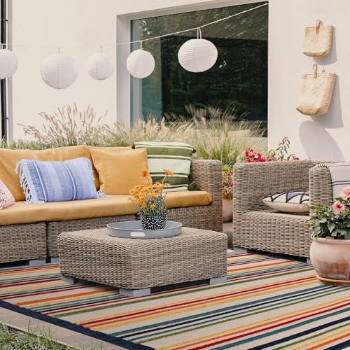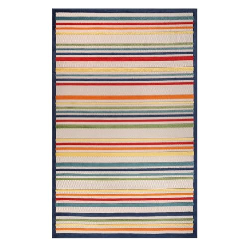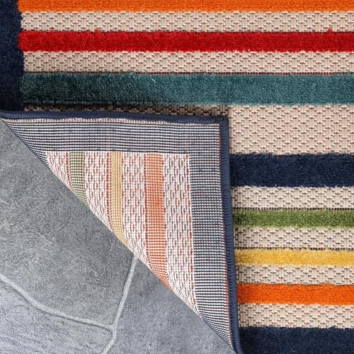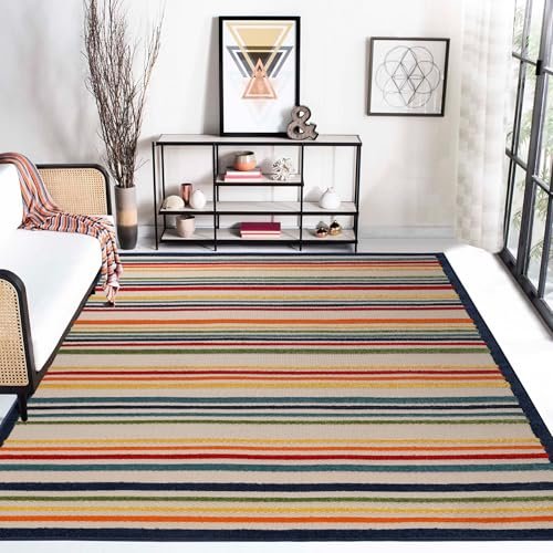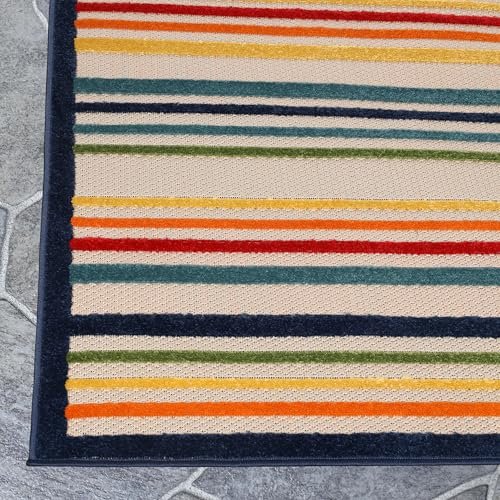 Superior Indoor Outdoor Area Rug, Perfect for Patio, Bedroom, Kitchen, Laundry Room, Entryway, Office, Playroom, Carpet Cover, Modern Casual Stripe Geometric, Eastyn Collection, 6′ x 8′ 10″, Cream
