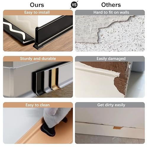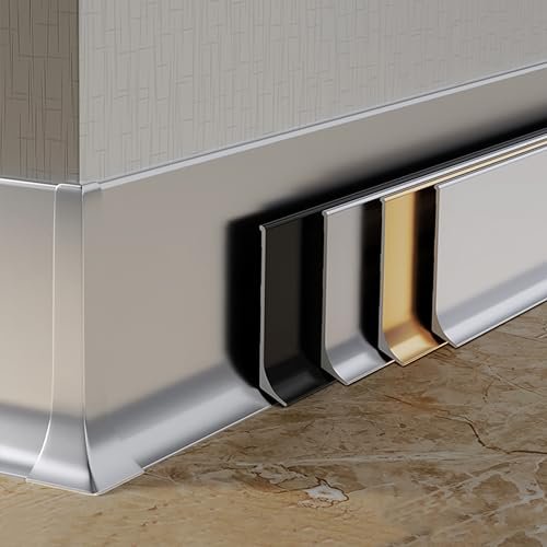Surprecision Aluminium Baseboard Molding Trim Height 100mm (3.94″) Length 2500mm (8.2ft) Metal Wall Base Cove Base Aluminium Skirting Trim – Elevate Your Home Décor (Silver, 6pcs)