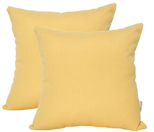 Sweet Summer Living Outdoor/Indoor Sunbrella Throw Pillows Square Set of 2 Pieces 16″x16″ Canvas Buttercup – Cover Only, Insert Not Included