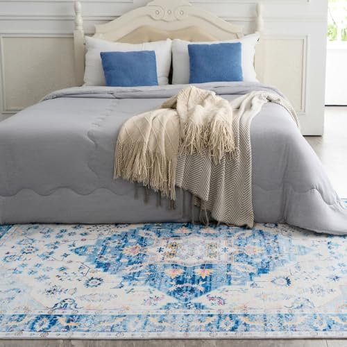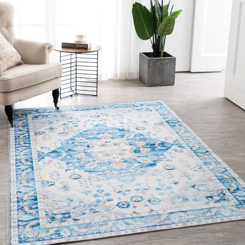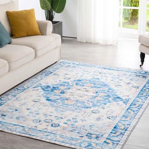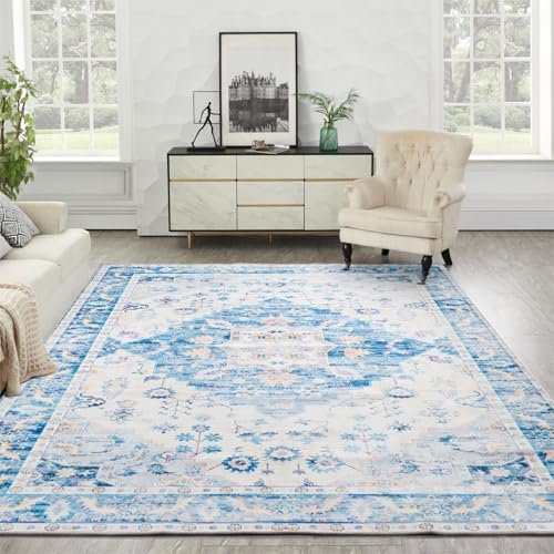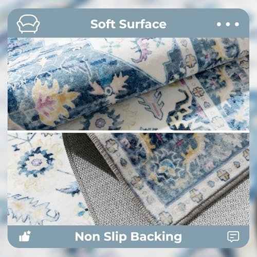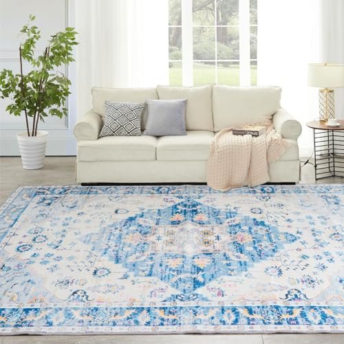 Syalife 10×14 Area Rugs – Washable, Low Pile, Non-Slip for Living Room, Bedroom, Dining Room and Home Office – Non-Shedding Carpet, Blue/Multi