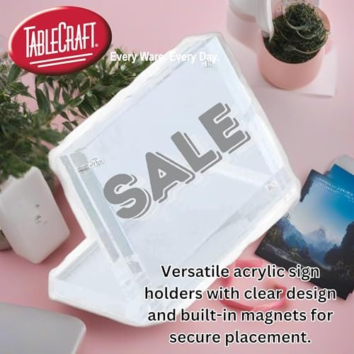 Tablecraft Magnetic Acrylic Sign Holder, Clear with Magnets, Restaurants, Rectangular Commercial Retail Displays, and Event Signage, Use for Menus, QR Codes, and Promotional Material, 3.5″, Set of 24