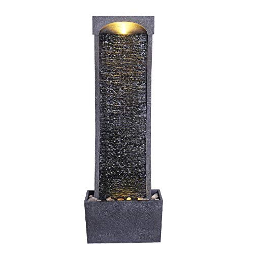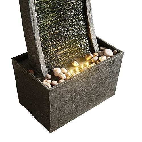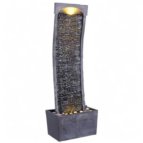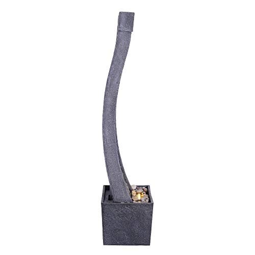 Teamson Home 38.58 in. Modern Curved Faux Slate Waterfall Fountain for Indoors or Outdoors with LED Light Accents and 1.98-Gallon Pump, Black and Stone Gray