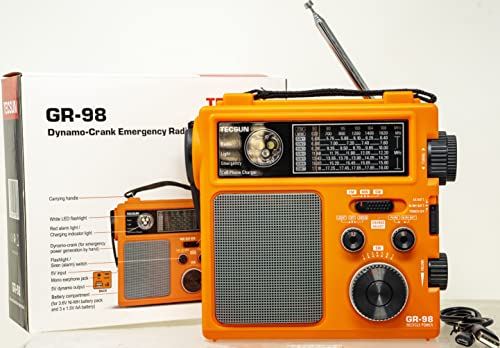 Tecsun GR-98 Hand Crank DSP AM/FM & 7-Band Shortwave Emergency Radio, Color Orange