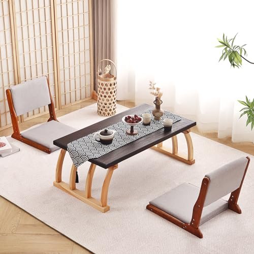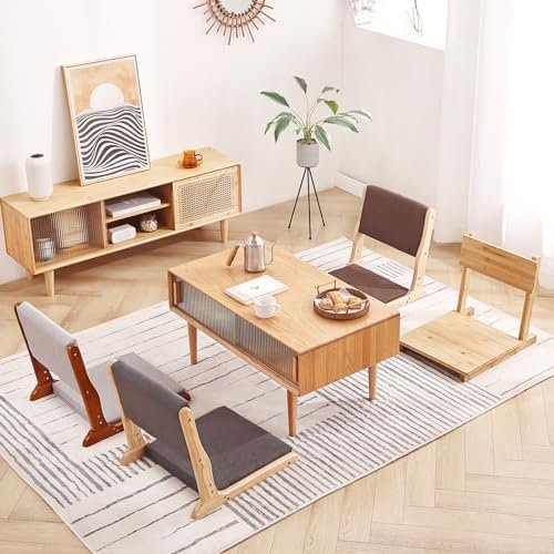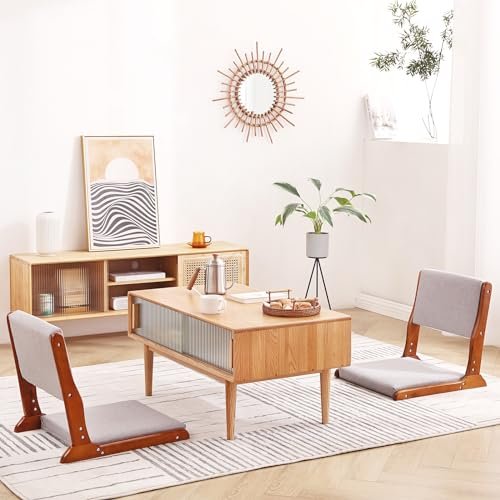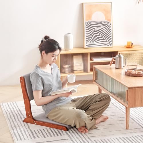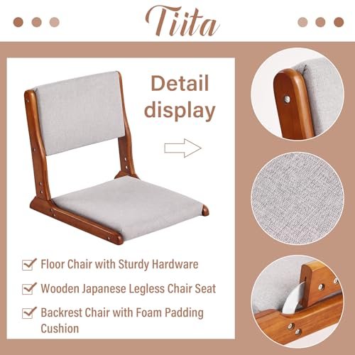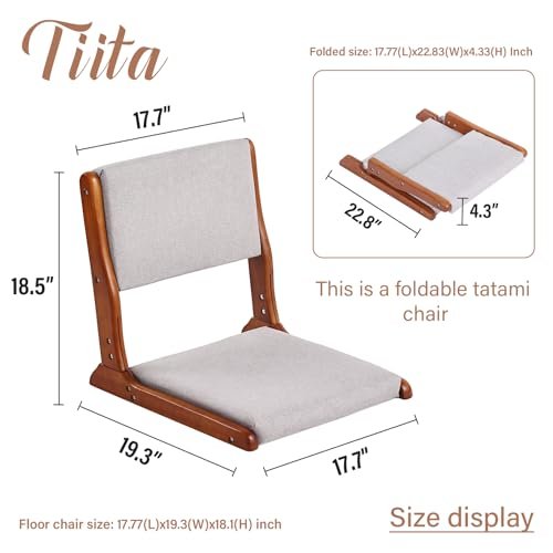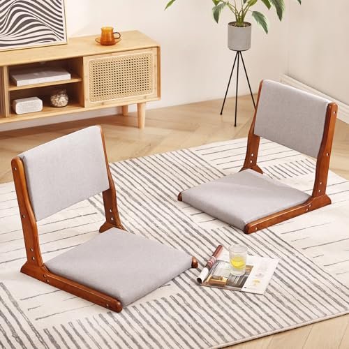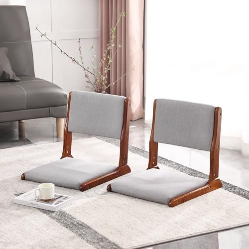 Tiita Floor Chair with Back Support, Foldable Meditation Tatami Chairs, Backrest Chair with Cushion, Living Room Chair Seat 2 Pack, Walnut Grey