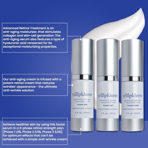 Trilipiderm Advanced Retinol Serum for Anti-Aging – 3 Phases (1.5%, 3.5%, 5.5%) – 5oz Each