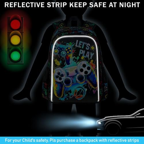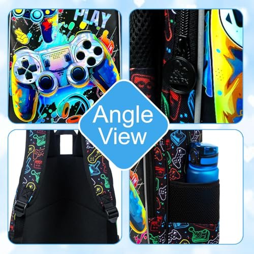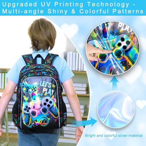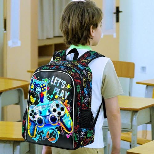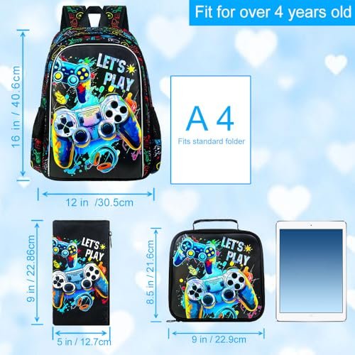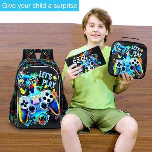 UFNDC 3PCS Boys Game Backpack, Kids Bookbag with Lunch Box, Water Resistant School Bag for Elementary Preschool Toddler