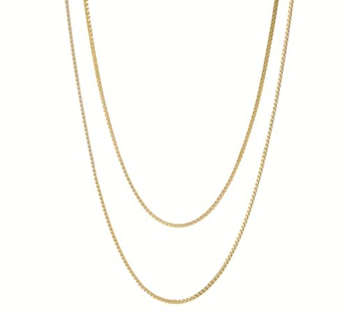 UNAHKTHY 14K Solid Yellow Gold Box Chain Necklace, Available in 0.65mm/1mm for Women and Men With 16-30 Inch Lengths (0.65mm, 24inch)
