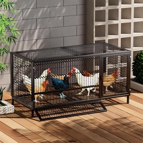 Ventilated Chicken Coop with Encrypted Hole Spacing, High-Temperature Paint Small Animal Cage, Pet Playpen for Indoor & Outdoor Use, Easy to Clean(Black,100 * 58 * 62cm)