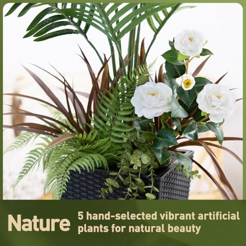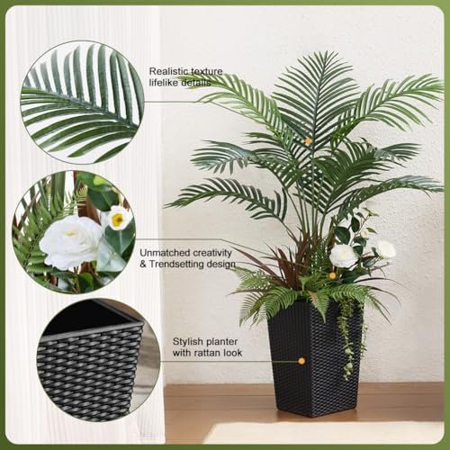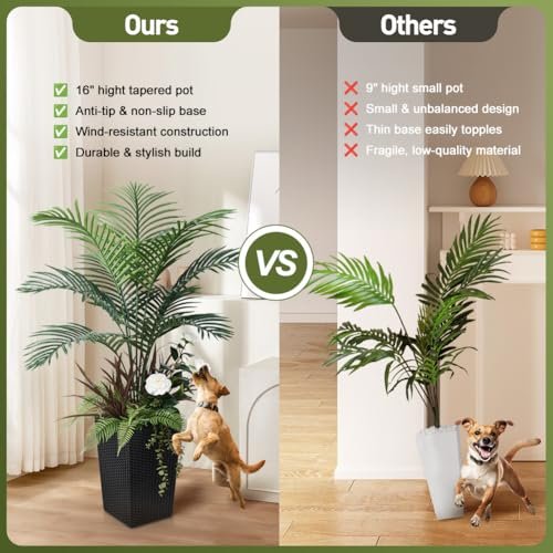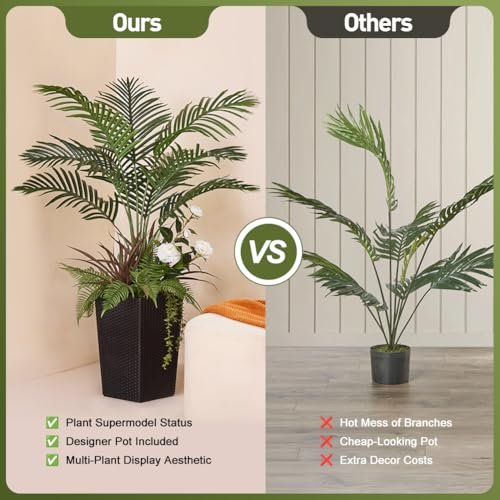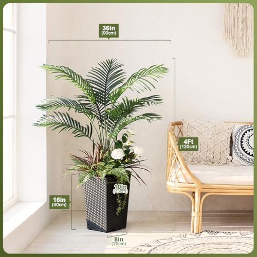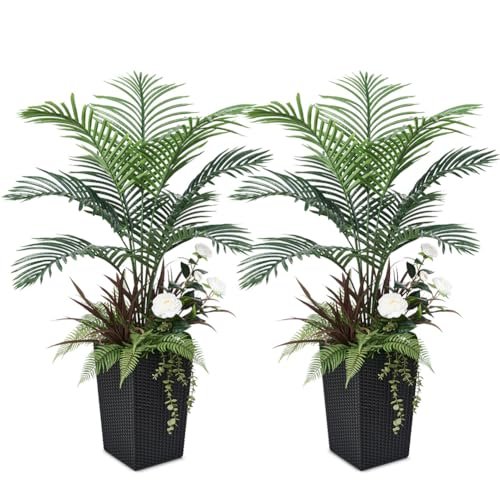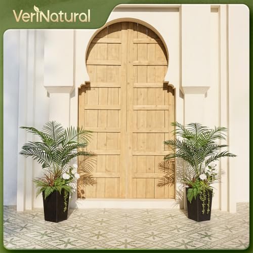 VeriNatural Artificial Palm Tree 4ft Tall- Faux Tropical Areca Plant with Black Large Taper Planter-UV Resistant Fake Floor Potted Plants for Indoor & Outdoor, Home, Porch, Living Room, 2 Pack- VN148