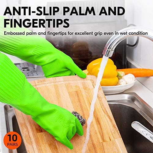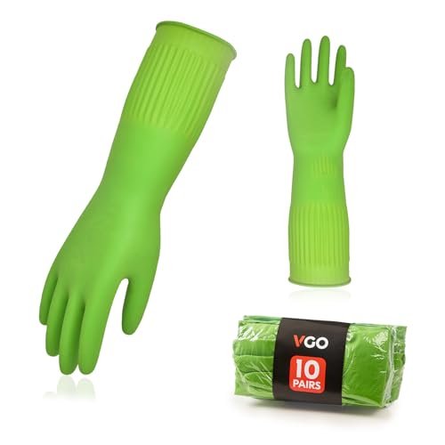 Vgo… 10-Pairs Dishwashing Gloves, Reusable Household Gloves, Kitchen Gloves, Long Sleeve, Thick Latex, Cleaning, Washing, Working, Painting, Gardening, Pet Care (Size M,Green, RB2143)