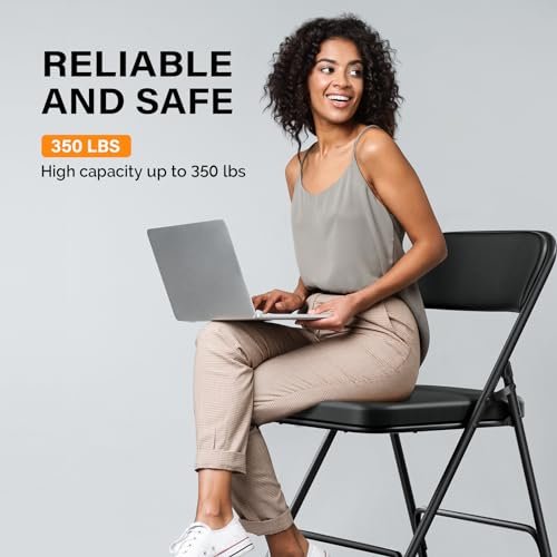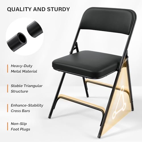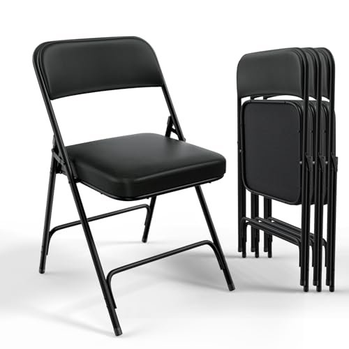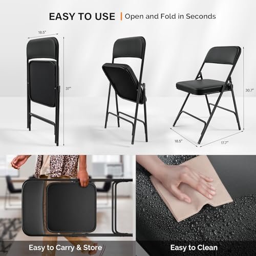 VINGLI Padded Folding Chairs with Thick Seat Cushion, Portable, Durable & Extra Comfortable Foldable Chairs for Indoor & Outdoor Events, Banquet, Party, Dinning, Work, Craft, PU, Black, 4 Pack