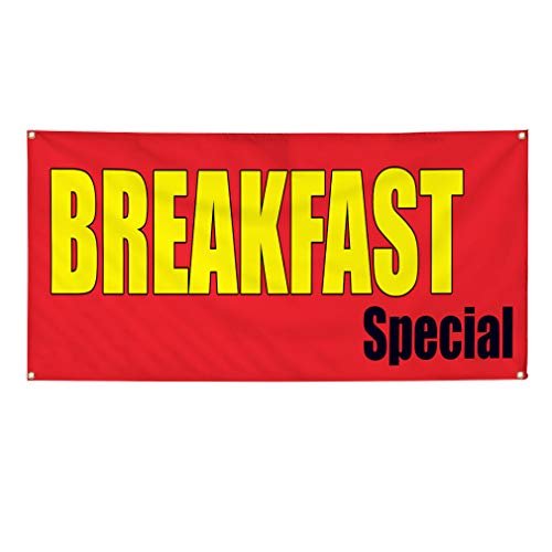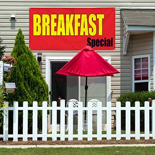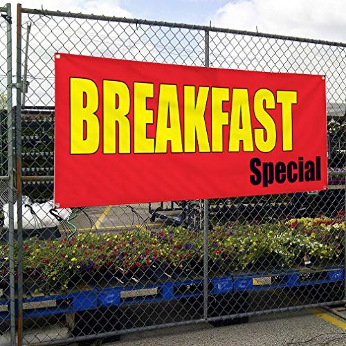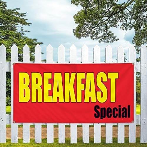 Vinyl Banner Multiple Sizes Breakfast Special Food Fair Promotion Business Lifestyle Outdoor Weatherproof Industrial Yard Signs Red 10 Grommets 60x144Inches