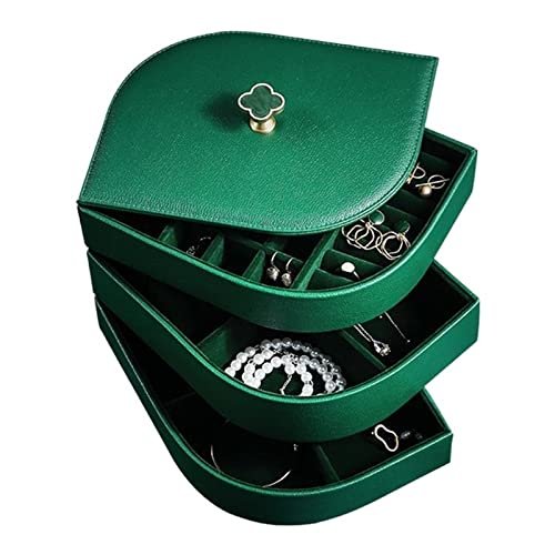 VSULZVNU Jewelry Case Jewelry Box Jewelry Display Storage Jewellery Box 3-Layers Luxury Large Leather Jewelry Storage Box Tray Women Jewelry Organizer Case Earrings Ring Necklace (A 18 x 22 x 15cm)