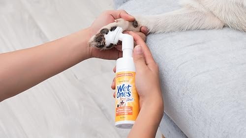 Wet Ones for Pets Antibacterial Dog Paw Cleaner with Built-in Scrubber Brush, Tropical Splash Scent – Foaming Cleanser for Dog Paws – Paw Washer & Grooming Care, 5 Ounce